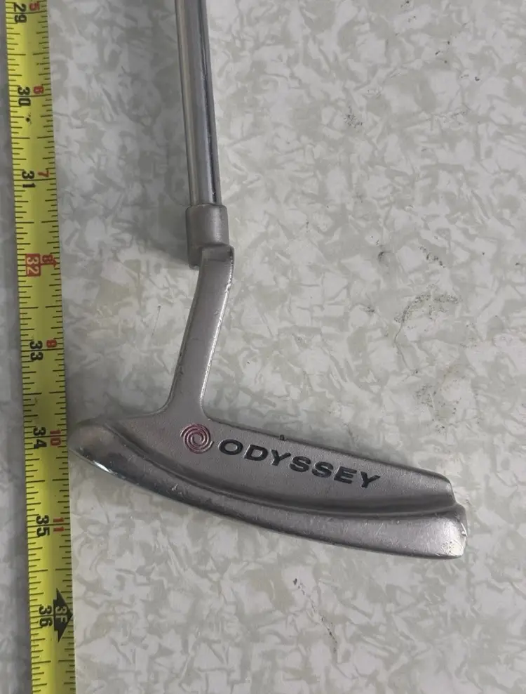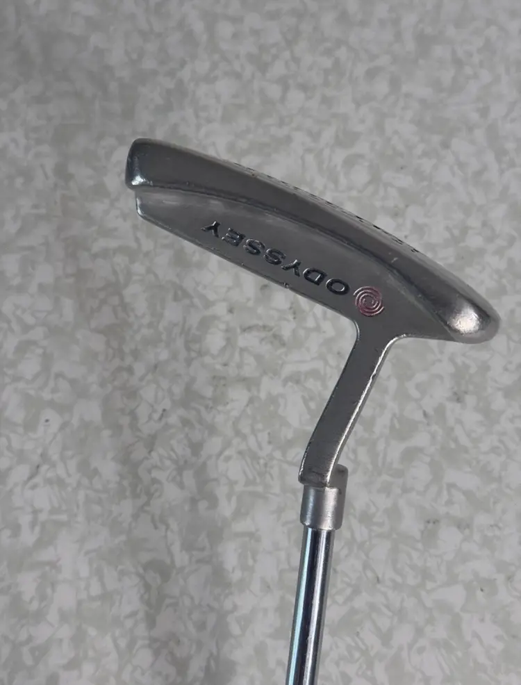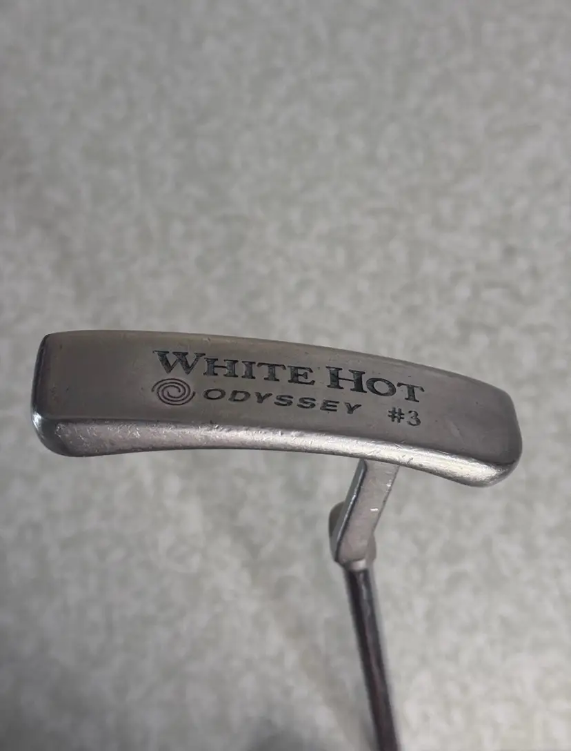 The White Hot Odyssey Number #3 Putter is a premium golf club designed for right-handed male golfers. With a sleek stainless steel head and a steel shaft, this blade putter offers precision and control on the green. Has a good grip and measures 35” long