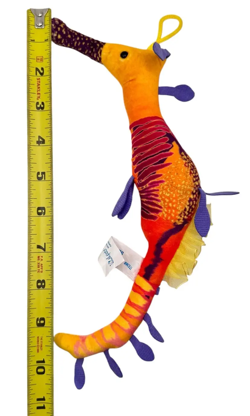 Wishpets weedy sea dragon plush in vibrant orange, pink and purple.
