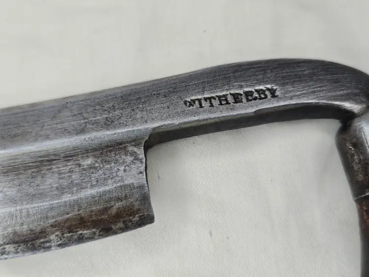 8 inch drawknife by Witherby. The blade carries the Witherby mark, a name long associated with quality American edge tools. Handles are tight to the tool.
