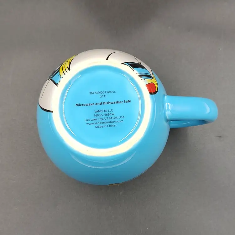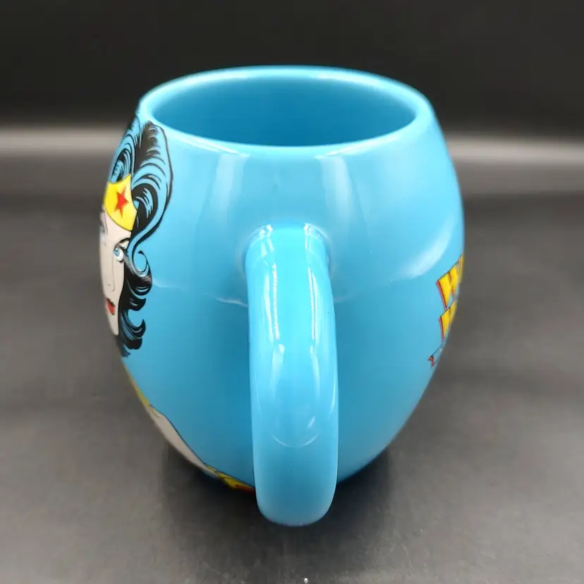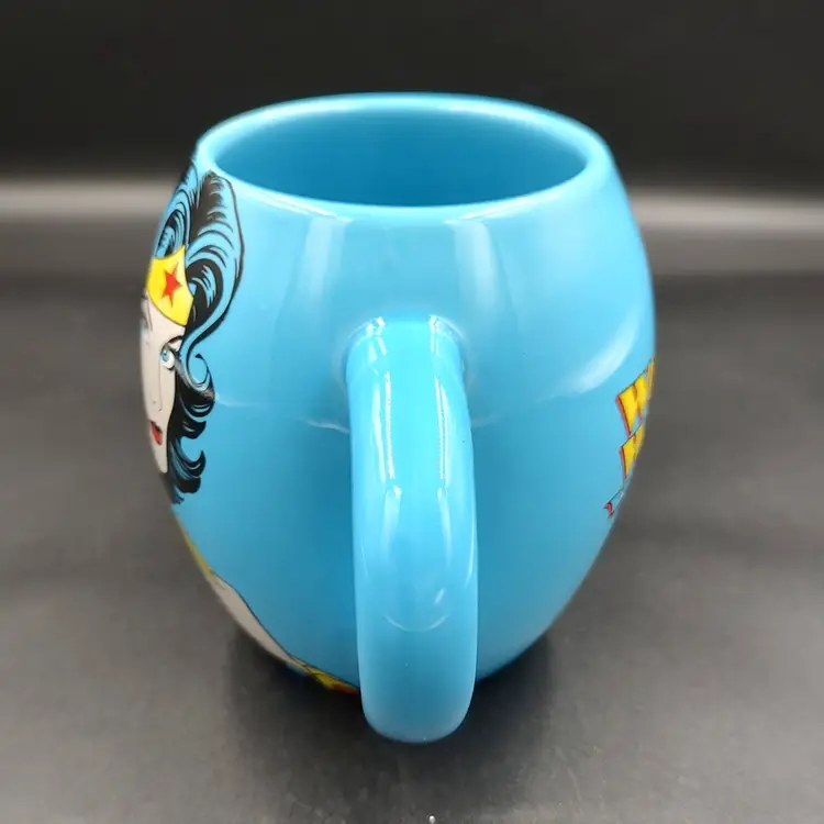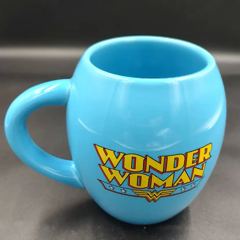 Wonder Woman DC Comics Light Blue Ceramic Coffee Mug. Height 4.5" x diameter 4.5". Holds 16 oz. In excellent condition. Made in China