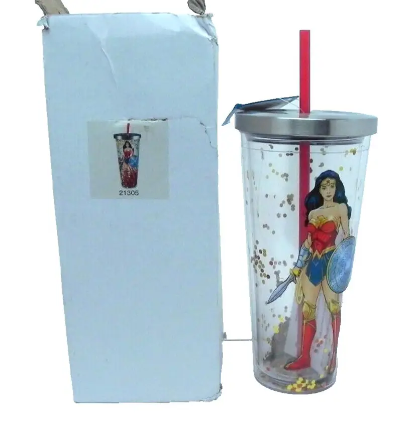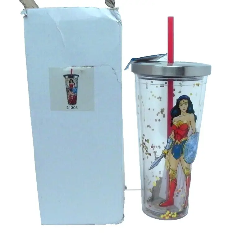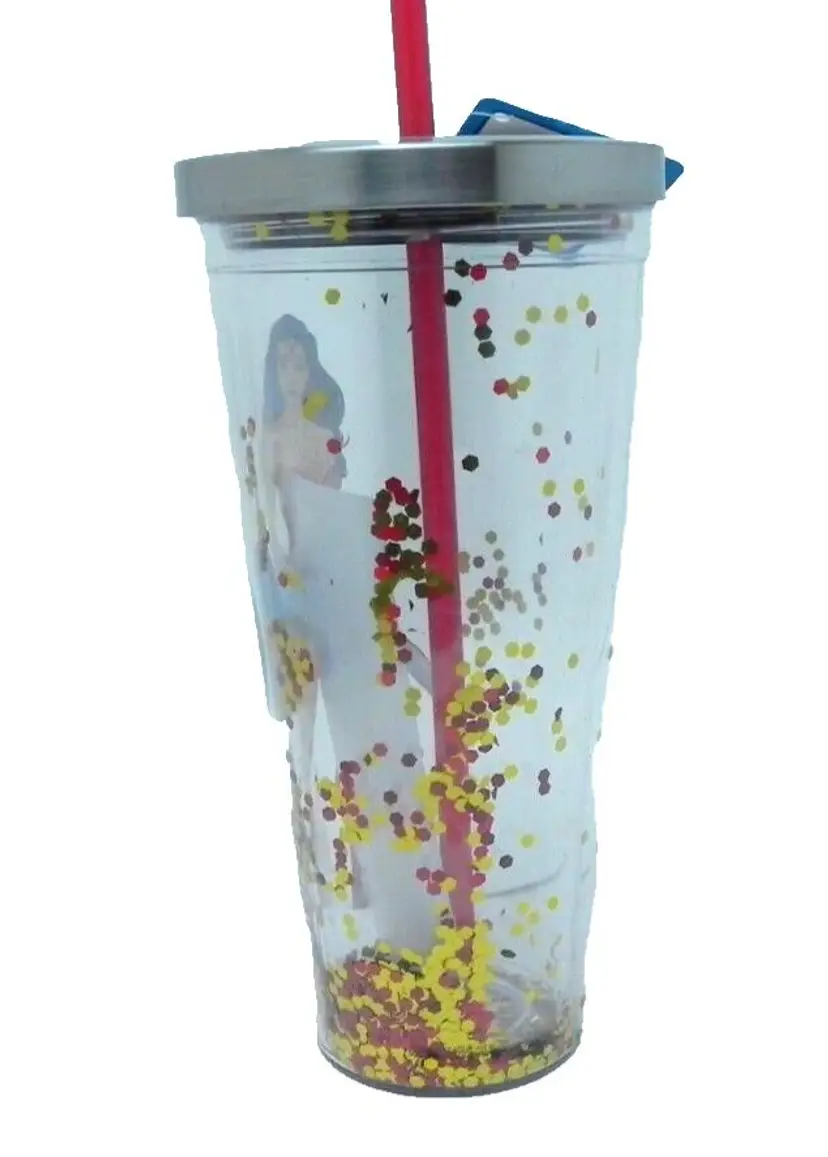 Wonder Woman Tumbler with Straw 20 ounce Insulated Glitter NEW