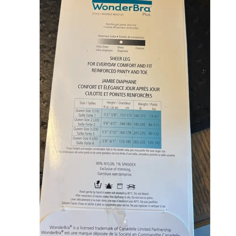 Stylish black pantyhose by Wonderbra. Reinforced for durability. Perfect for any occasion.