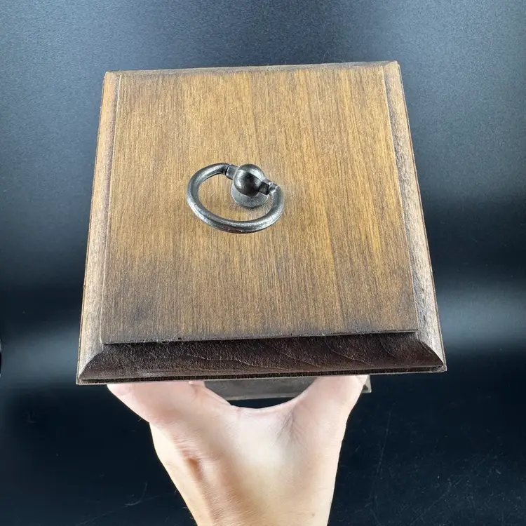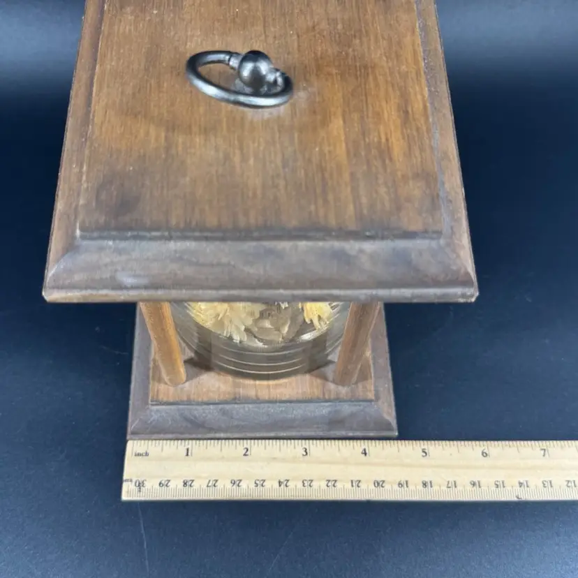 This Wooden Glass Dried Flower Terrarium Decor is approximately 6.5” in height and approximately 4.5” in length. There are NO chips or cracks in the wood or glass. Some of the flower pedals came off and are at the bottom can be viewed in photos. It is not signed or marked as well.