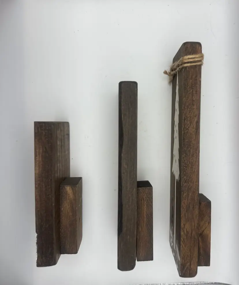 Wooden Hand Painted Rustic Christmas Tree Blocks Decor Set Of 3