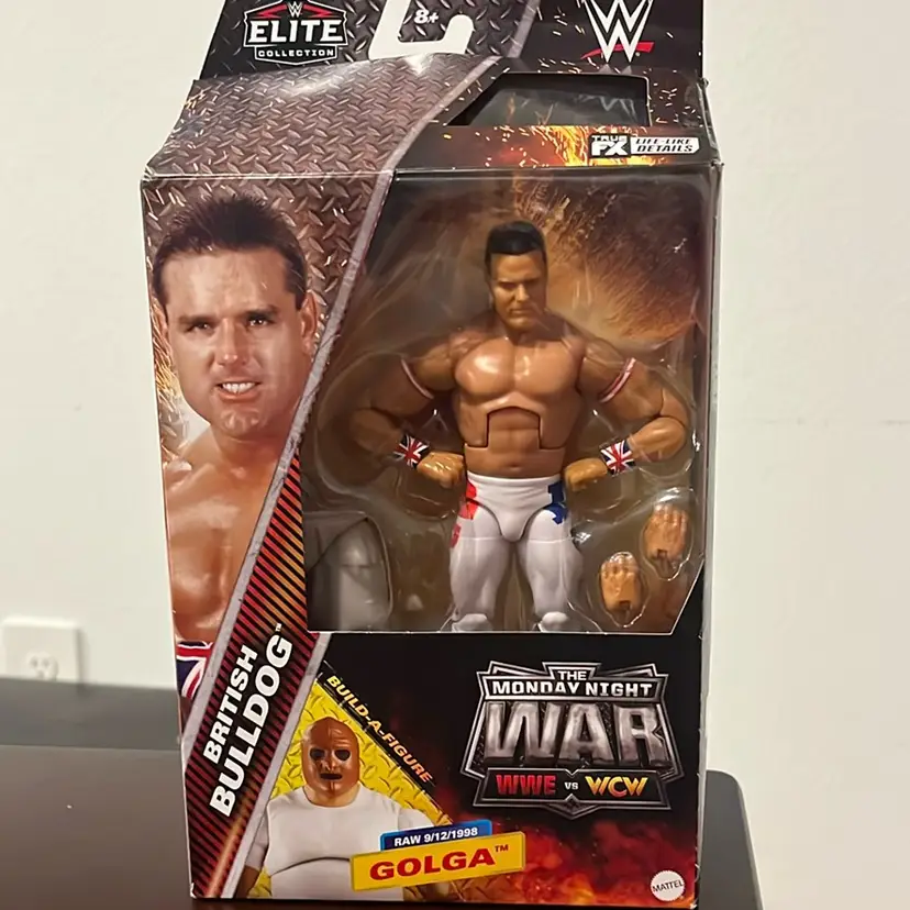 The WWE British Bulldog Elite The Monday Night Wars Wrestling Figure is a collectible action figure based on the iconic wrestler British Bulldog. Standing at 7 inches tall, this multicolor plastic figure is a part of the WWE franchise and TV show, with features such as clothes, boxed packaging, and adjustability. This officially licensed reproduction captures the essence of the character and is a must-have for any wrestling fan or collector.