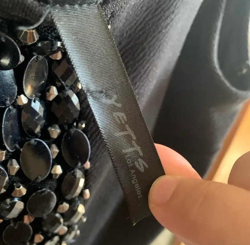 No fabric tag or size tag. Beading on front. Fit and flare. 33” length.