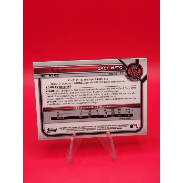 Zach Neto 2022 Bowman Draft Sapphire Chrome #BDC-18 Los Angeles Angels. Ships free PWE.