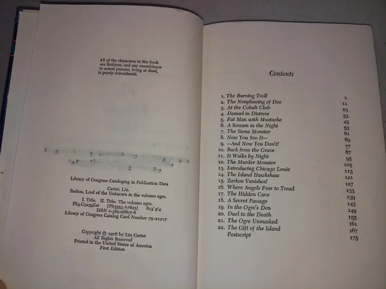 Zarkon Lord of the Unknown - The Volcano Ogre by Lin Carter Ex-library, mylar cover, some library markings. Good binding. No rips or tears.