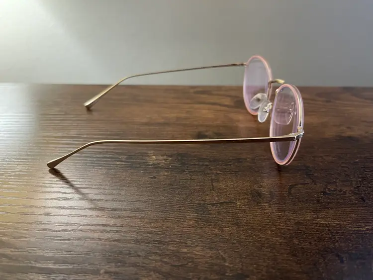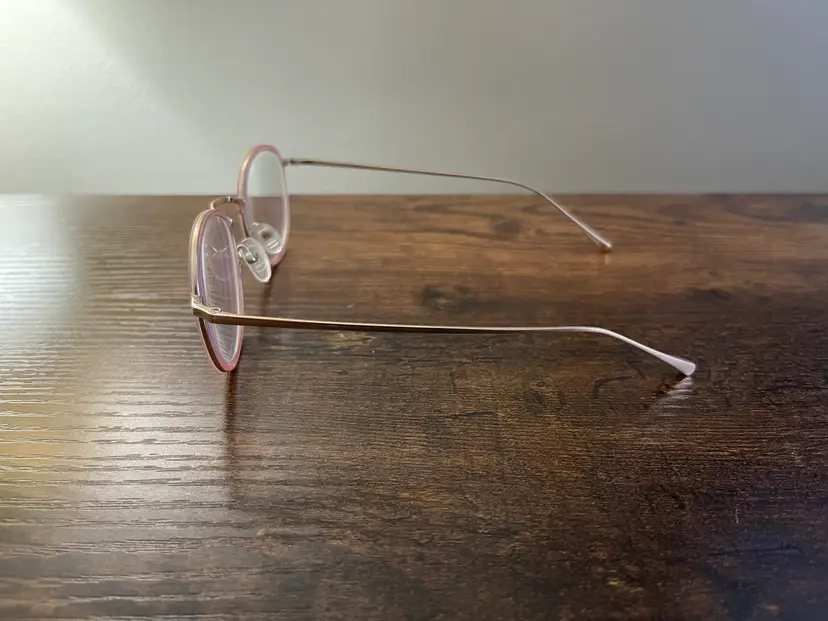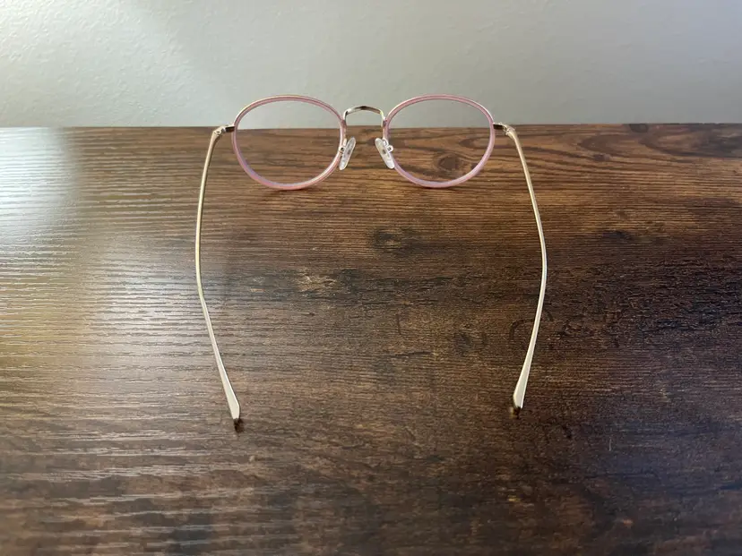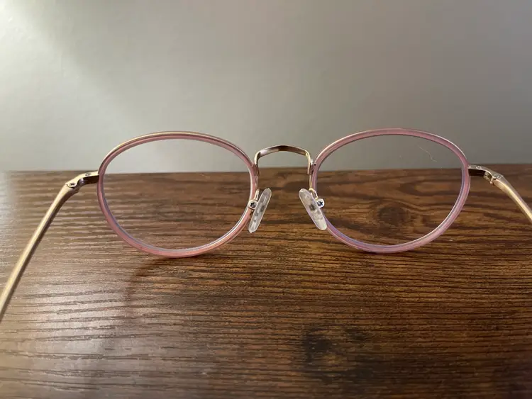 Condition Description: These Zenni round pink and gold eyeglass frames are in pre-owned, very good condition. Frames show minimal signs of normal wear with no noticeable scratches, dents, or major flaws. Hinges open and close smoothly, and nose pads are intact. These fashionable frames have been inspected for overall quality and are ready for new lenses and nose pads.