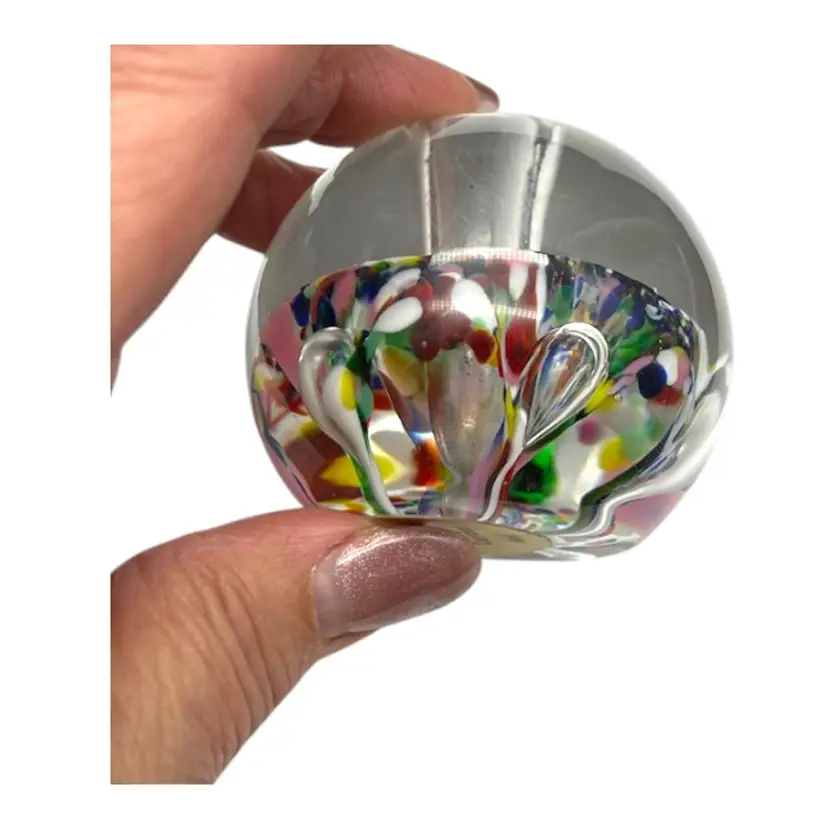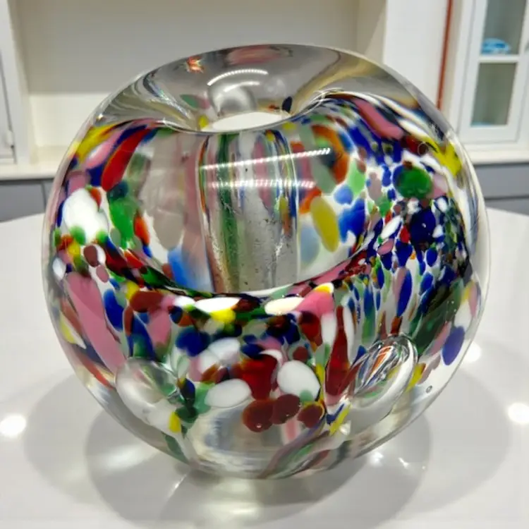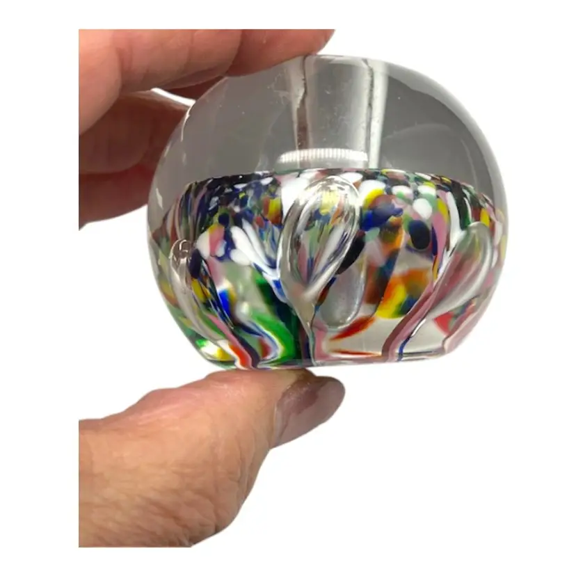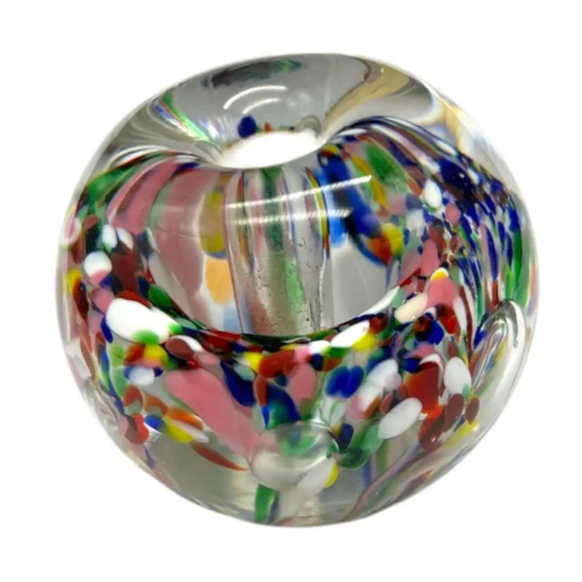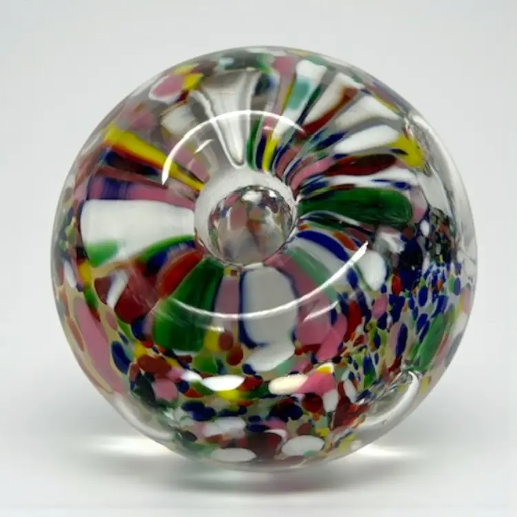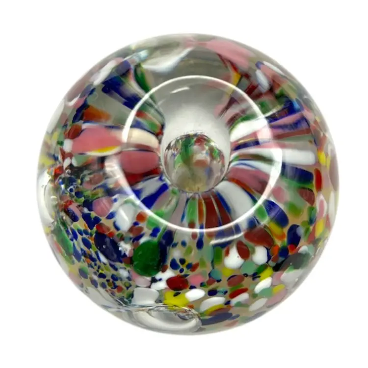 The bubbles look like flower petals, surrounded by many colors. Sticker on the bottom. No call outs